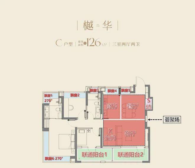 亮点还在于南向次卧和客厅联通的双阳台,顶格拉满,赠送面积(约15%)也是特别诚意。