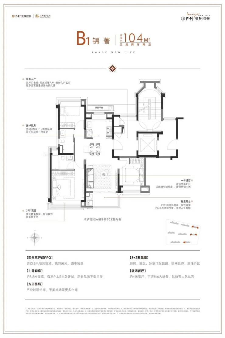 2. 建面约 104㎡三房两厅两卫:主力改善,奢阔尺度