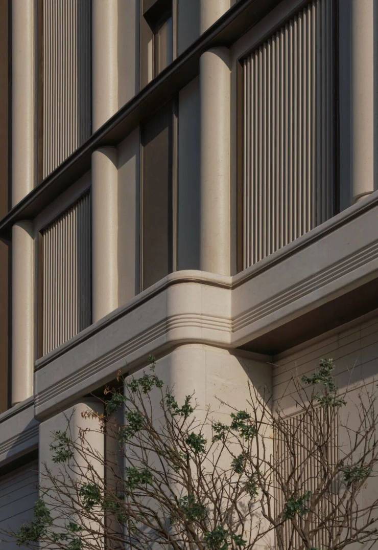 景观优势:2#楼推窗即揽超千方无界镜面水景与南法秘境花园,四季绿植与质感建筑立面相映成趣,真正实现“居家即赏园”的沉浸式景观体验;同时,小区通过错落布局打造无遮挡开阔视野,将社区园林的丰富层次、自然盛景与城市天际线三重风光尽收眼底,让业主在居家生活中,就能欣赏到优美的自然景观与城市风光,提升居住的舒适度与幸福感。 △建筑师手绘立面节点