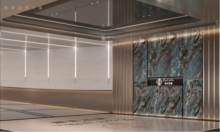项目车库采用贯穿式鱼尾灯坡道和超耐磨地坪,过道全部采用精装吊顶,地下管道和局部区域进行二次包裹!尤其惊艳的是项目的豪华车马厅, 采用水磨石、水晶漆、铝饰面、大板砖、立柱石材包边、门禁系统三合一!