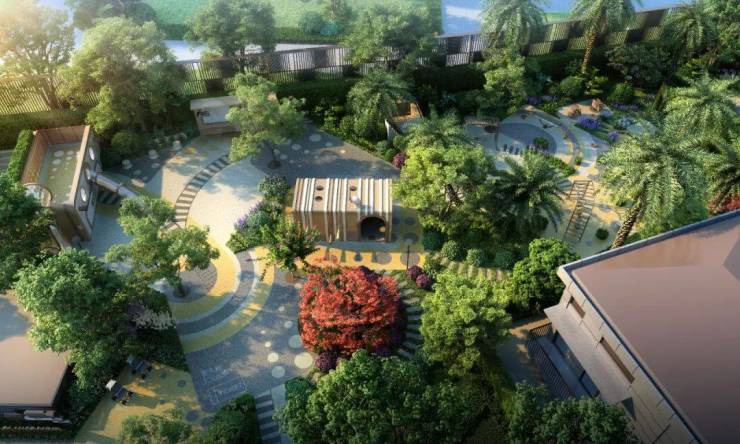 项目园林由业界知名的奥雅设计操刀设计,打造了一个 ”翡光礼境“景观社区。