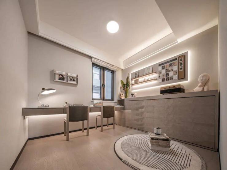 第一个亮点,室内软装是 邀请梁志天大师团队进行设计的,分为两大主题,预设家庭生活场景,围绕家庭成员的居住方式,加载健身、书房、茶室、养宠等功能,展现生活的精致感与摩登感。