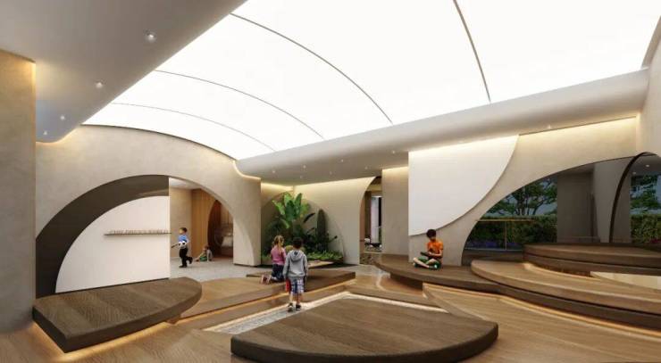架空层位于5#楼王位置楼栋,用作泛会所空间,为孩子提供不受天气影响的社区活动空间,实属优秀~