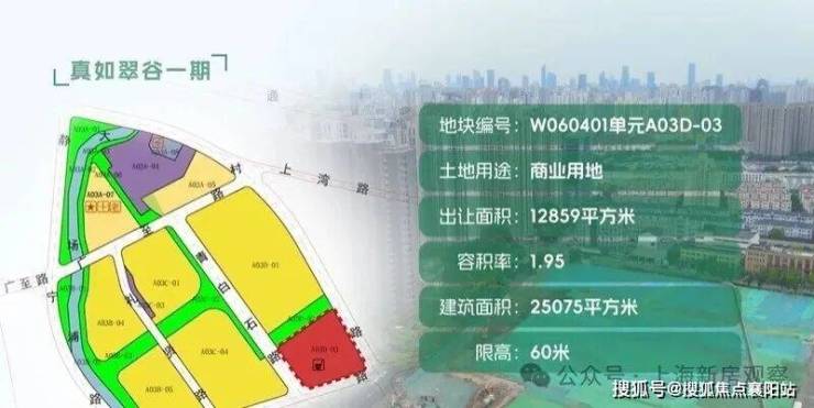 A03D-03地块: 出让土地面积12859平方米,土地用途为商业,规划容积率1.95,计容建筑面积25075平方米。