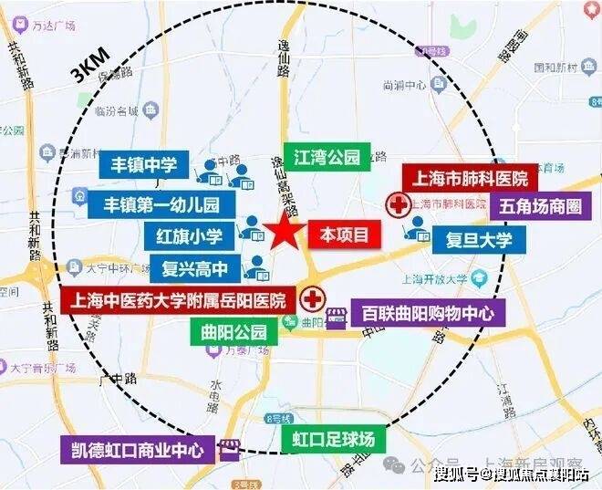 医疗方面, 上海中医药大学附属岳阳中西医结合医院(三甲)距离项目直线约1.5公里;同济大学附属上海市第四人民医院(二甲)距离项目直线约1.6公里。