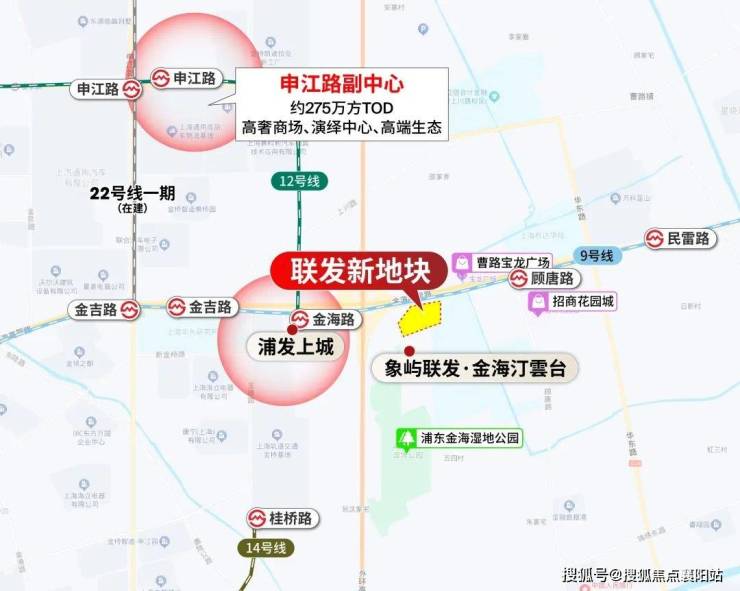 轨道交通 :项目距 地铁 9 号线金海路站直线约 800 米 (步行 10 分钟), 12 号线金海路站约 1km ,双轨交汇覆盖,是金桥东少有的步行即达地铁枢纽。9 号线直达张江科学城、世纪大道、陆家嘴、徐家汇;12 号线快速抵达金桥、漕河泾、徐汇滨江,未来规划地铁 21 号线(建设中)加持,通勤效率全面升级。