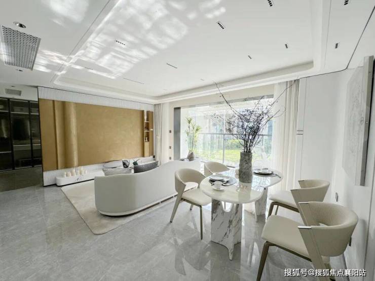 招商中旅·观境的解决方案是 “零无效空间”。通过整合餐客厨等公共区域厅,将原来南北厅中间的走廊空间融合到使用空间中,减少过道的面积,避免碎片化的空间带来的冗余浪费。大面宽,短进深,餐厅与客厅横向相连,每一平方米都物尽其用,把客厅升级为家庭互动主场。
