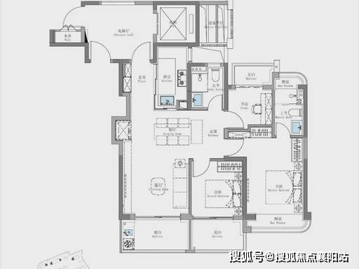 热门户型二:建面约 114㎡悦景三房(3 室 2 厅 2 卫)
