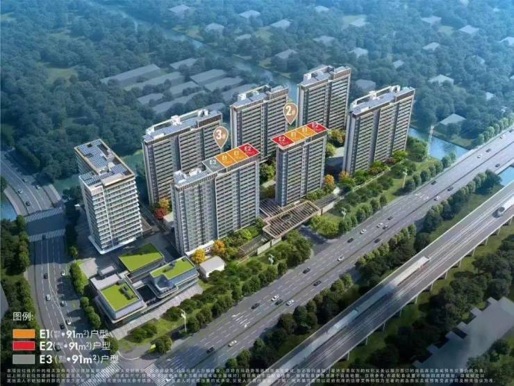 占位上:整个社区的北侧与东侧双面环水、西侧是商业,不止有繁华的城市街景,更有滨水风光,光这个社区的占位和天赋,就已经足够出色。