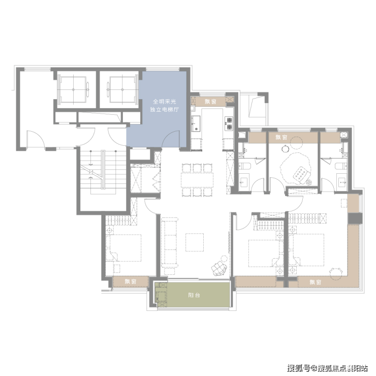第一是‘独’:独梯独户。这是一部电梯直达一户的纯正一梯一户设计。电梯门打开,眼前这个约11平米的独立电梯前厅,完全属于私有。这不是过道,而是一个可以自由布置的玄关延伸空间,放鞋柜、孩子的自行车、露营装备,甚至作为回家的情绪转换区,这种绝对的私密和尊崇感,在上海新房市场中极为稀缺。