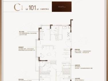 3. 建面约 100-101㎡三房两厅两卫:主力爆款,改善家庭挚爱