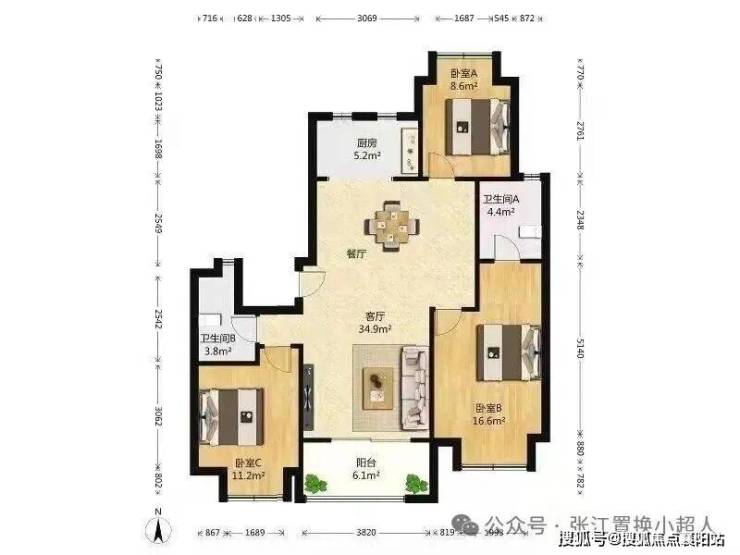 该户型为项目入门级主力,是张江稀缺的 “小面积、高品质” 改善户型,总价可控、功能齐全,性价比突出: