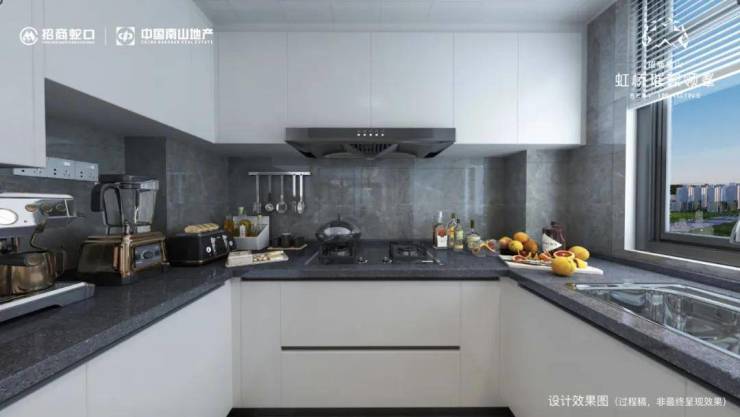 厨房+餐厅+客厅+大面积观景阳台一体化,提升整个空间利用率。