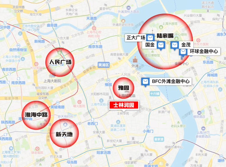 商业方面:500米的范围内香港名都城、豫园商圈、复兴艺术中心,人民广场、新天地、外滩、南京路步行街都在2km范围,顶级商业环绕。