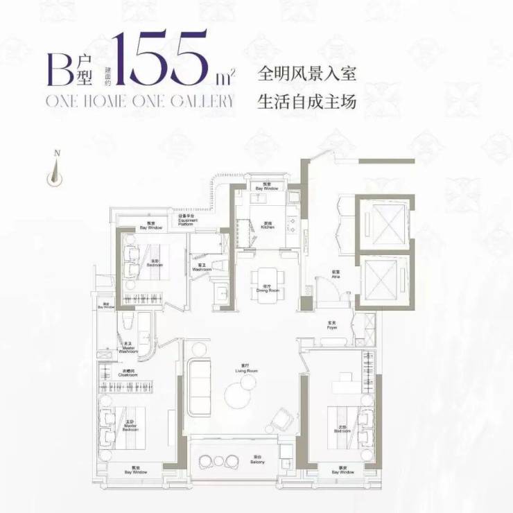 建面约155、193㎡3-4房