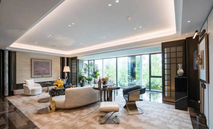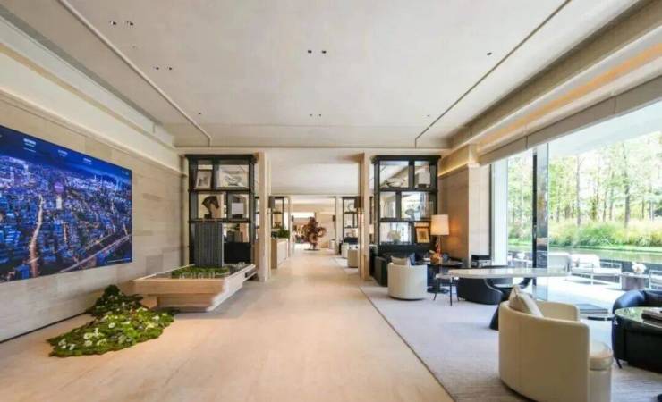 社区主入口更是兼具豪华酒店与海派元素设计风格, 挑高约6米的入户大堂、水系景观与艺术家共创作品 交相辉映,奢华感和高级感拉满!