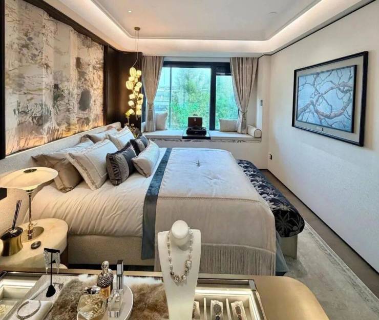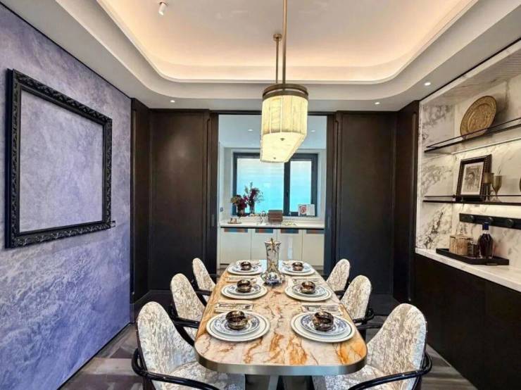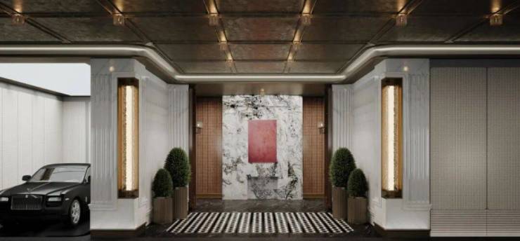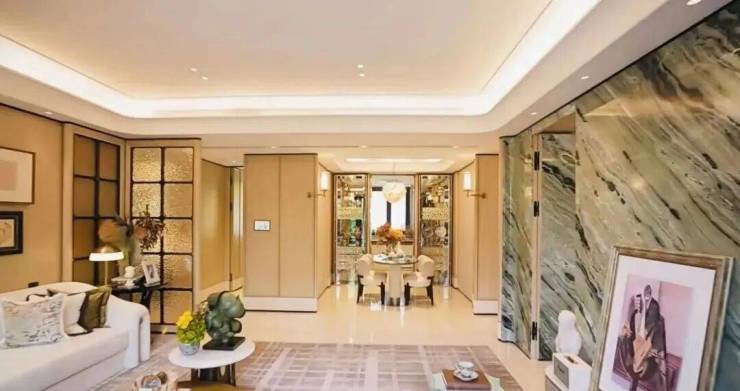 例如入户玄关铺设有“石材皇后” 鱼肚印象 ,这种级别的奢石在很多项目中通常仅作局部镶嵌。