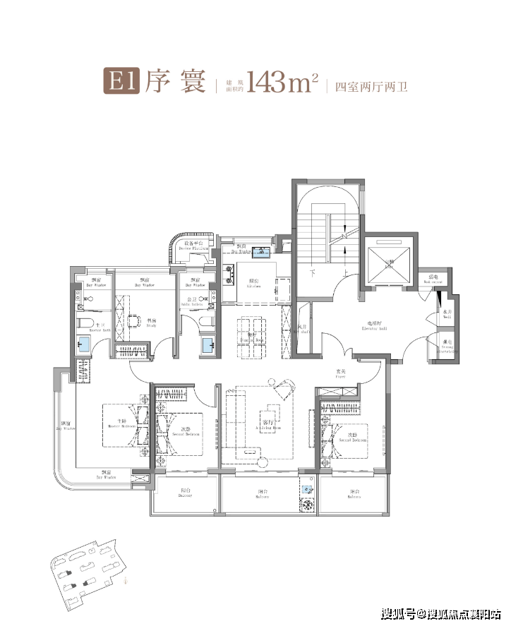 建面约143㎡4房是南北通透、四开间朝南的户型格局。子母门入户,独立玄关,大户人家气场全开! 南向三阳台面宽约10米,加上主卧270°转角飘窗,带来了阔绰的南向采光面!