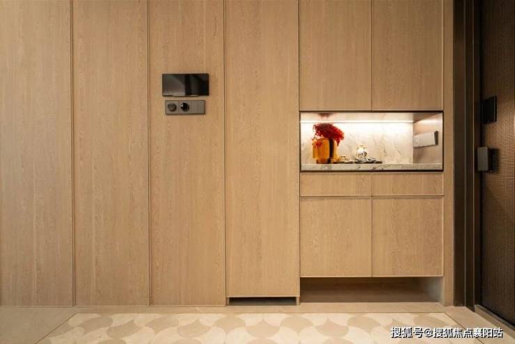 在美学方面,招商序还采用了 天然木皮鸡翅木包裹 ,与墙面、地面保持视觉统一。