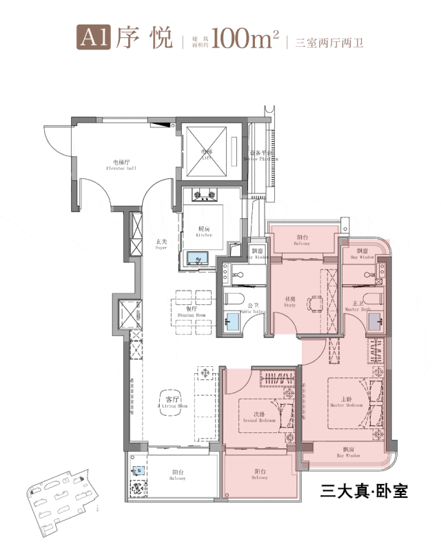要知道,现在市面上的主流做法,是把三房的各个功能空间,都做飘窗设计,以得到更开阔的景观视野,并增加实际面积使用率。