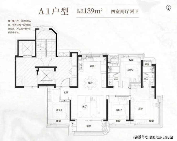 终极改善大四房户型适配三代同堂二孩大家庭终极置业需求,空间尺度达到主城改善大宅标准。户型做到超大面宽四开间朝南极致采光格局,全屋四面向阳,南北双向极致通透,室内空气循环通畅,采光通风条件达到主城住宅优质水准。阔尺一体化公共活动空间,客厅连通南向贯通式大阳台,室内视野开阔无遮挡,居家公共空间大气舒展,充分满足大家庭聚会社交亲子活动全部多元需求。户型动静分区极致分明,四个卧室分布空间合理,各个房间私密性极强,家庭成员日常作息互不干扰。主卧独立豪华大套房,配套独立卫浴全屋收纳衣帽间南向景观飘窗,主卧内部空间尺度宽敞,居住私密感与高端舒适度拉满。其余次卧空间充足,可分别规划老人房双儿童房独立书房茶室多功能空间,全屋空间功能分区完善,无任何面积浪费,高得房率加持实得空间阔绰,真正实现一家三代同堂全周期居住需求,一生一套无需置换。