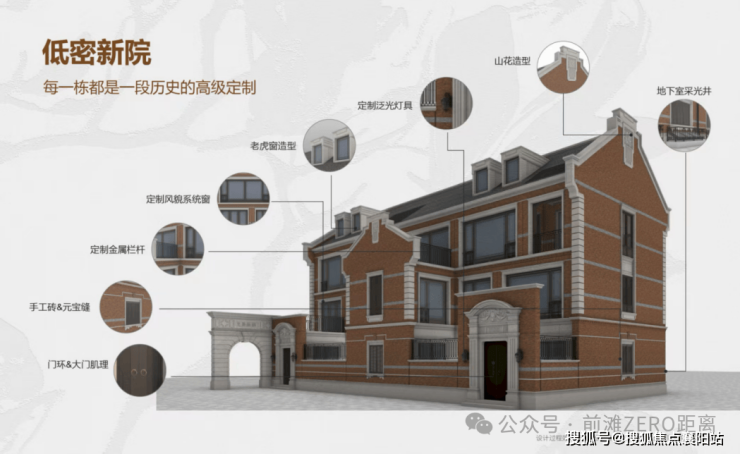 为了还原海派建筑的质感,项目运用八大定制级工艺,通过定制级手工砖、定制级山花造型、定制级铁艺栏杆、定制级入户壁灯、定制级的风帽雨水斗等部品部件,匠心打磨每一处细节。