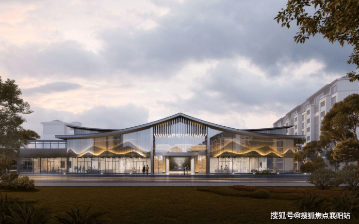项目采用现代中式建筑风格,粉墙黛瓦,平坡结合,整体立面三段式处理,基座线脚中式元素的融入,顶部挑檐及坡顶设计,充分表达中式风格建筑特点。在小区内部景观设计上,项目打造了一湖·两园·十二境景观结构。