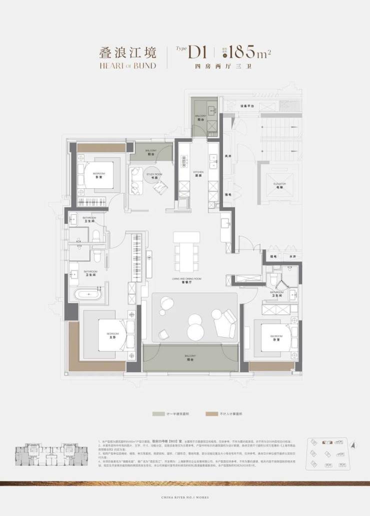 更难得的是,项目185㎡户型堪称上海滨江之上的园境栖居典范。