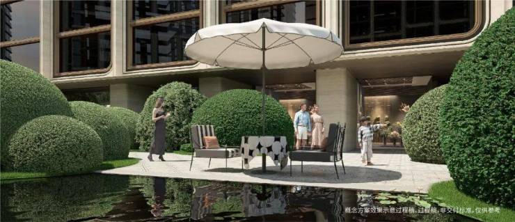 当然,在家里是景观,下楼就是公园,下面这种南侧花园人视角的示意图,是不是让你一秒来到浪漫的法式公园!