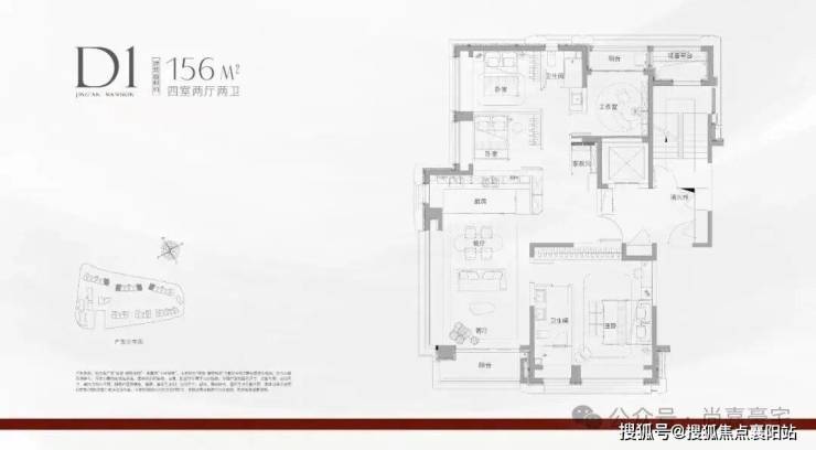 建面约156㎡四房两厅两卫:LDKG一体化餐客厅,直面园区景观;多飘窗设计,户户观景;南向豪华主卧配备超大一字衣帽间与朝南双台盆卫浴,尊崇感十足。各居室尺度宽裕,匹配高阶改善家庭的生活品味。