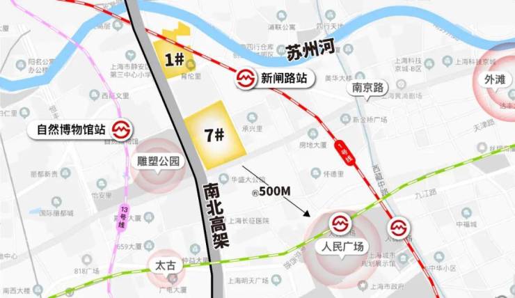 绝对的黄金地段,其中1号地块临苏州河,离1号线新闸路站也很近。