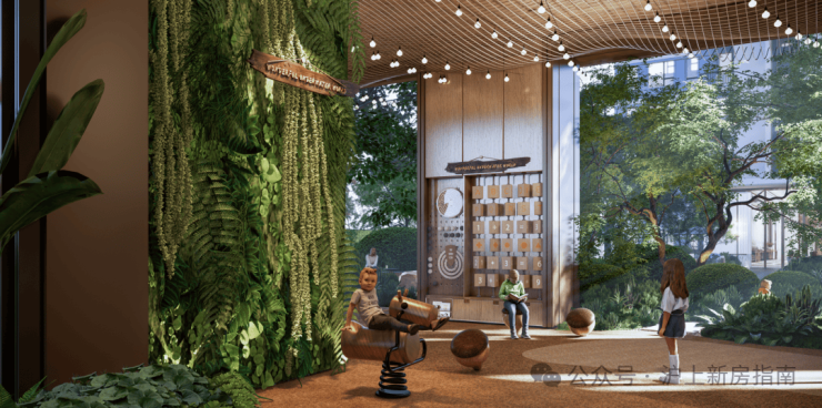 项目还打造了多个特色景观节点,每一个节点都兼具生态性与功能性,让景观不再是“观赏品”,而是“生活的一部分”。街角绿化处,三株“贝之花”自绿境中昂扬生长,成为社区的标志性景观,既提升了社区的颜值,又彰显了项目的独特气质;礼序归家轴线上,约176米的门庭设计,搭配对称的绿植布局与精致的景观装饰,尽显归家的尊崇感,让业主从踏入社区的那一刻起,就能感受到品质与礼遇;景观架空层打破了“室内与室外”的界限,将自然景观引入架空层,打造出通透、舒适的休闲空间,让业主在雨天也能享受自然的气息。