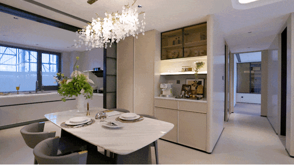 延伸出的"早C晚A"魔法空间,藏着都市人的生活仪式感:清晨,胶囊咖啡机吐出第一缕醇香,骨瓷杯沿的奶沫画出心形拉花;入夜,威士忌酒柜的柔光亮起,水晶杯折射出琥珀色的