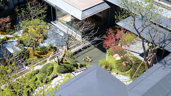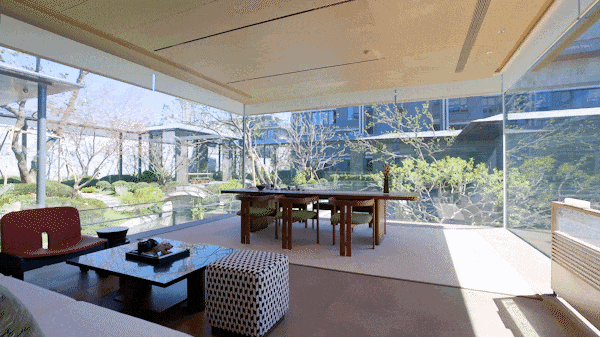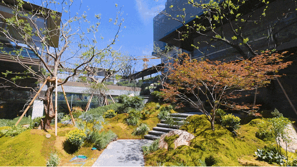 立体庭院,感受一步一景的山水画境 :风雨连廊漫步,耳畔是流水淙淙,眼前是叠石苍松。约460㎡下沉庭院不像景观,更像一幅您就在其中的立体宋画,一草一木,都可触摸、可对话。