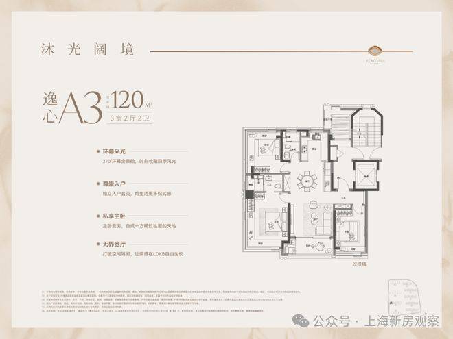 南向约9.3米超大面宽,搭配约3.3米的朗阔层高,营造出恢宏通透的空间尺度感。客厅与南向阳台完全打通,延伸出一片融于自然的阳光厅堂,推窗即见私家庭院,实现室内外场景的自由切换,演绎真正的墅居生活意境。