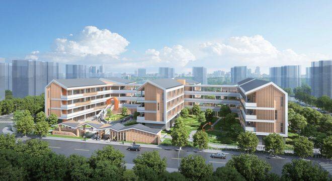 此块商办、文化商业用地,整个区域内有2所幼儿园、1所小学、1所初外,规划有多中的教育设施,其中新建小学办学规模按30班设置,新建初级中学办学规模按24班设置,效果图如下。