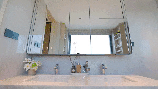 主卫同样配有纵向飘窗,空间通透敞亮,毫不压抑。全明卫生间配置高端体验,选用恩仕智能马桶,汉斯格雅龙头花洒与杜拉维特台盆共同打造高品质洗漱动线,线性浴霸实现快速均匀取暖。镜柜巧妙收纳日常用品,让台面长久整洁清爽,更特别配备美妆冰箱,贴心照顾护肤需求。