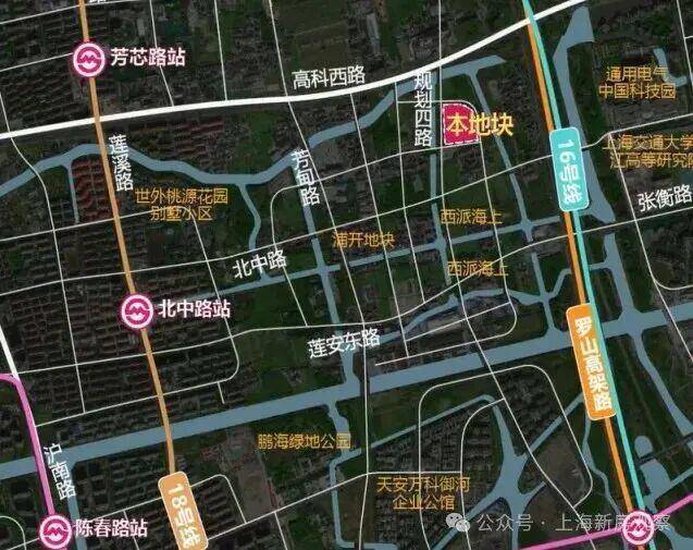 该地块位于浦东内中环,属于浦东北蔡板块,距离18号线芳芯路直线距离约1.5公里。地块的东面就是张江科技科学城和罗山路高架。