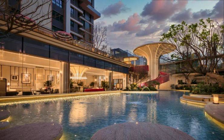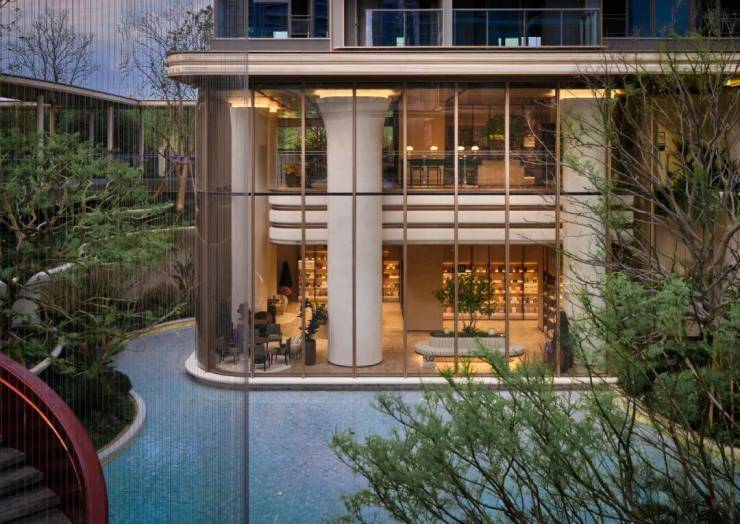 拾级而下或乘坐电梯,会发现景观从此处的2D平面转向了3D立体。 无论是在健身房挥汗如雨,还是在行政酒廊小酌,甚至是坐在泳池边,抬眼便是瀑布跌水与树影婆娑,真正做到了“室内外无界,生活与自然无界”。