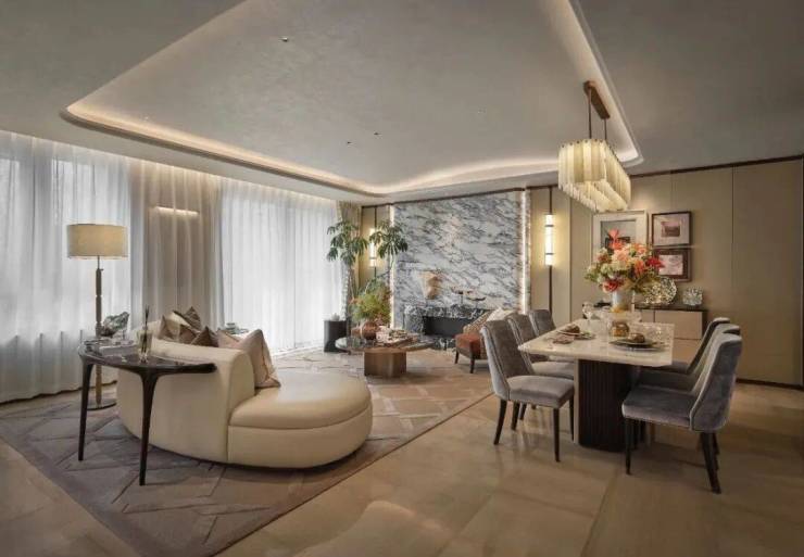 南向双阳台搭配可改造的灵动空间,让会客厅尺度高达约34㎡ ,足以对标市区约200㎡的大平层。