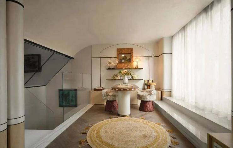 穿过鎏金铜门,映入眼帘的并非寻常的过渡空间,而是一座足以让人驻足凝望的 艺术殿堂——礼序过厅。其中整面爱马仕同款的 繁花主题艺术马赛克背景墙,镶嵌近45万片马赛克,由工匠纯手工拼贴,耗时整整2个月。仅此一项,每平米造价便逾万元。每一片微小马赛克的精准落位,都在无声诉说着西派云间对品质的偏执。