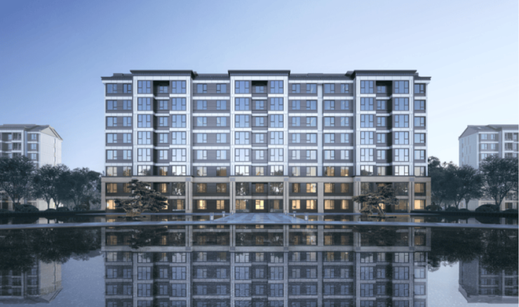 建筑立面:沿用中国特有的江南水乡建筑风格,采用古典三段式分割比例,保留坡屋顶元素,将含蓄雅致的文人情怀融入建筑,使人入园如临江南之境,尽享诗意雅居的惬意。