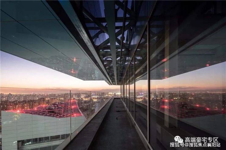全玻璃幕墙 :采用 Air-lux 四层 low-E 玻璃落地窗系统 ,两层氩气中空层,保温、隔热、隔音性能一流,隔音高达 45 分贝,通透无立柱,270° 观景视野。