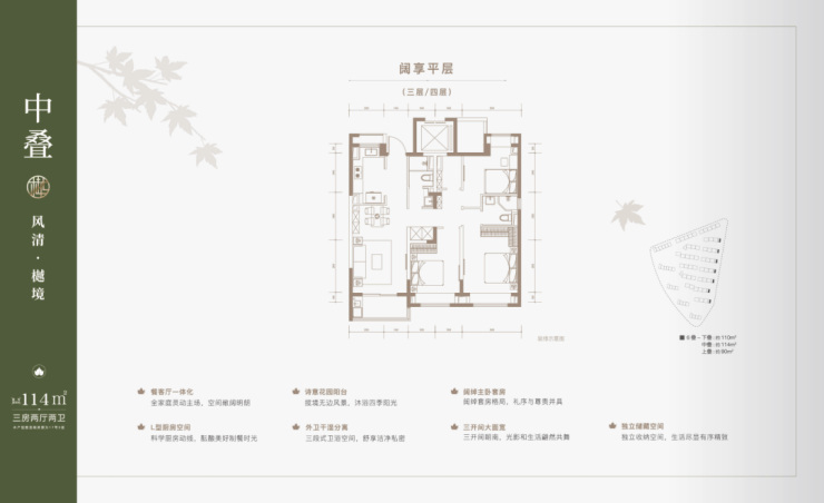 建面约137㎡下叠, 四房两厅三卫 全能格局,非常适合二娃家庭以及三代同堂。