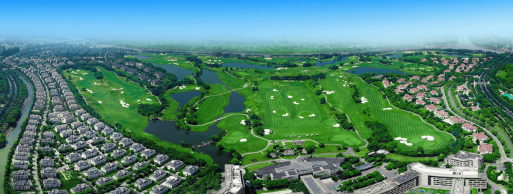 大华·梧桐樾旁边就是上海第二大高尔夫球场——约1800亩的 颖奕高尔夫球场 ,球道、沙坑、湖泊、树林,生态之美浑然天成。