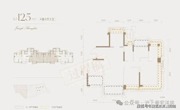 (二)125㎡四房两厅两卫:明星户型,三阳台 + 四飘窗,实得率 88%