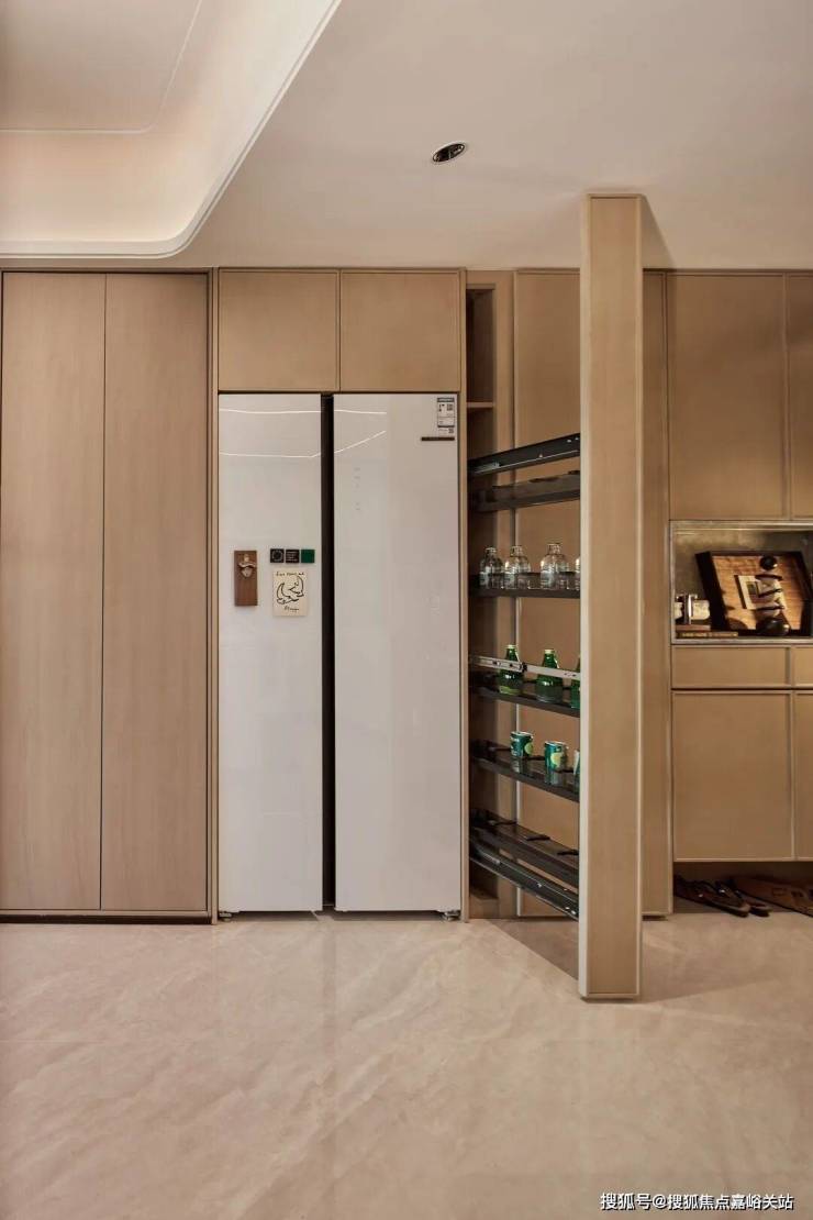 4.创新S墙分户设计 ,让收纳系统从平面延展为立体暗线,通过玄关柜、冰箱柜、零食拉篮的巧思,用立体空间创造更海量收纳!