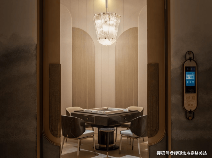 私宴厅&棋牌室 承载了业主宴请、聚餐、洽谈、品茗、娱乐等多元社交场景。私宴厅当中悬挂的石材,来自项目团队多番挑选,来自一个奢石展馆里的孤品,不仅拥有昂贵的蓝色色泽,天生的羽毛状纹理更是罕见!
