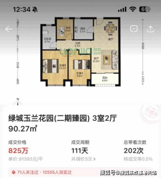 6.二手市场价格可期 ,旁边绿城二期今年成交一套90m²小户型,单价9.1万,比保利天奕前期小户型最贵单价还贵出近1万/m²!