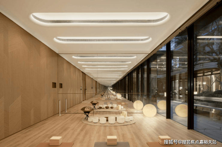 瑜伽室 内嵌七组定制音钵,匹配当下音疗的疗愈趋势,通过多元化、国际化的功能带给业主更便捷、更丰富、更松弛的日常体验。